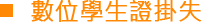 - 本系統掛失僅停用icash2.0支付功能,停用其他學生證功能請洽詢學校承辦窗口辦理。